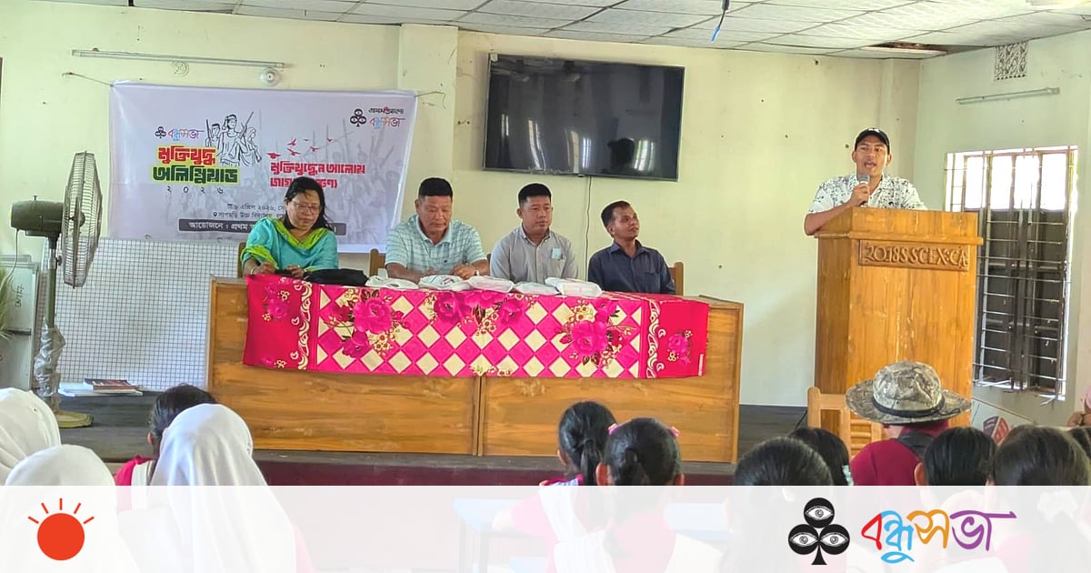 রাঙামাটি বন্ধুসভার সভাপতি আপন চাকমার সভাপতিত্বে প্রধান অতিথি হিসেবে ছিলেন সাপছড়ি উচ্চবিদ্যালয়ের সহকারী প্রধান শিক্ষক অরভিল দেওয়ান। তিনি তাঁর বক্তব্যে মহান স্বাধীনতাযুদ্ধের গুরুত্ব তুলে ধরেন এবং শিক্ষার্থীদের মধ্যে এমন জ্ঞানভিত্তিক আয়োজন করার জন্য রাঙামাটি বন্ধুসভাকে ধন্যবাদ জানান। ভবিষ্যতে এর ধারাবাহিকতা বজায় রাখার অনুরোধ জানান।