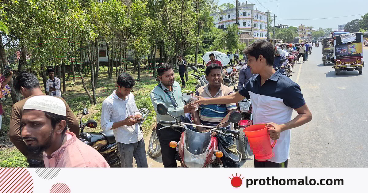 আলাপচারিতায় কাজল হোসেন বলেন, ‘পাম্পে তেল নিতে আসা মানুষগুলো রোদে পুড়ছে। দীর্ঘক্ষণ ধরে রোদে দাঁড়িয়ে থেকে তাঁরা তৃষ্ণার্ত হচ্ছেন। আশপাশে কোথাও পানি পান করতে যাবেন, সেই সুযোগও তাঁরা পাচ্ছেন না। তাঁদের এ কষ্ট দেখে আমার খুব খারাপ লেগেছে। তাই তাঁদের ঠান্ডা পানি পান করাচ্ছি। যত দিন বিরামপুরে তেলসংকটের কারণে ক্রেতারা এভাবে রোদে পুড়ে তৃষ্ণার্ত হবেন, তত দিন তাঁদের পানি পান করানো হবে।’