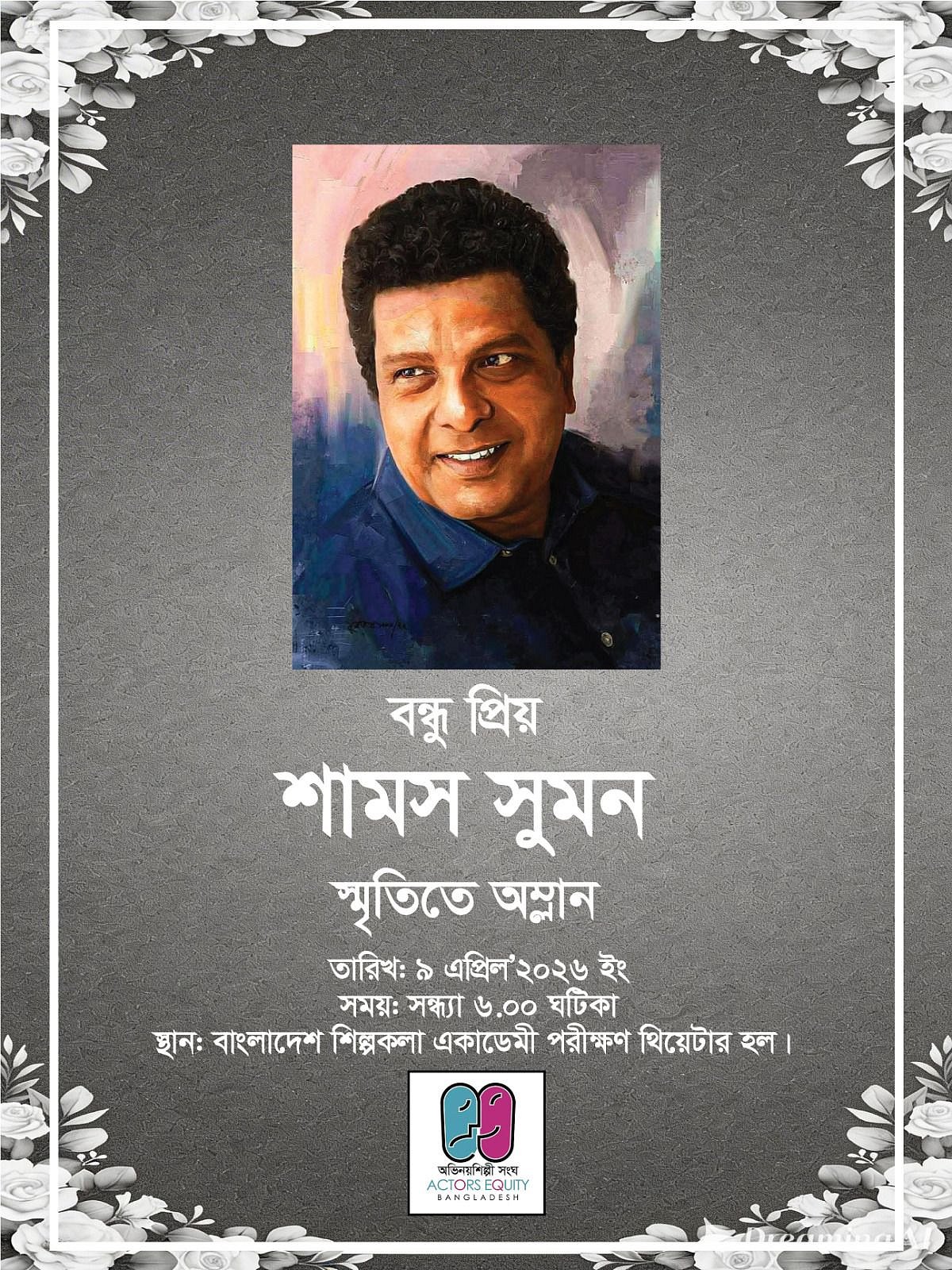 গত ১৭ মার্চ হঠাৎ অসুস্থ হয়ে মারা যান অভিনেতা শামস সুমন। সেই প্রিয় সহকর্মীকে স্মরণ করতে এক হয়েছিলেন অভিনয়শিল্পী ও কলাকুশলীরা। স্মরণ আয়োজনে উঠে আসে প্রয়াত অভিনেতা শামস সুমনের সঙ্গে দীর্ঘদিনের কাজের অভিজ্ঞতা। পাশাপাশি মানবিক এক শামস সুমনের কথাও বলেন অভিনয়শিল্পীরা। কেউ কেউ এটাও মনে করেন, অভিনেতার এই বিদায় শূন্যতা তৈরি করল।