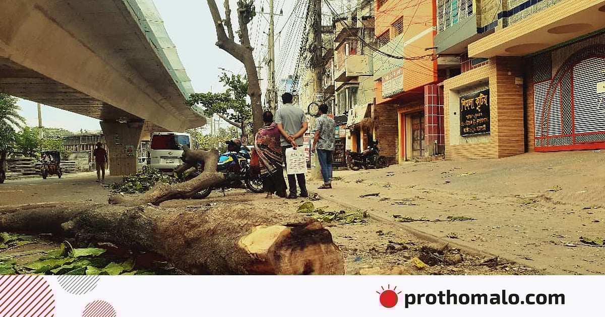 গাছ কাটার কাজে নিয়োজিত শ্রমিকদের সরদার মো. গাজি জানান, আটজন শ্রমিক টানা তিন দিন ধরে গাছ কাটার কাজ করছেন। তিনি বলেন, সালাহউদ্দিন নামের এক ব্যবসায়ী সিটি করপোরেশন থেকে গাছগুলো কিনে নিয়েছেন।