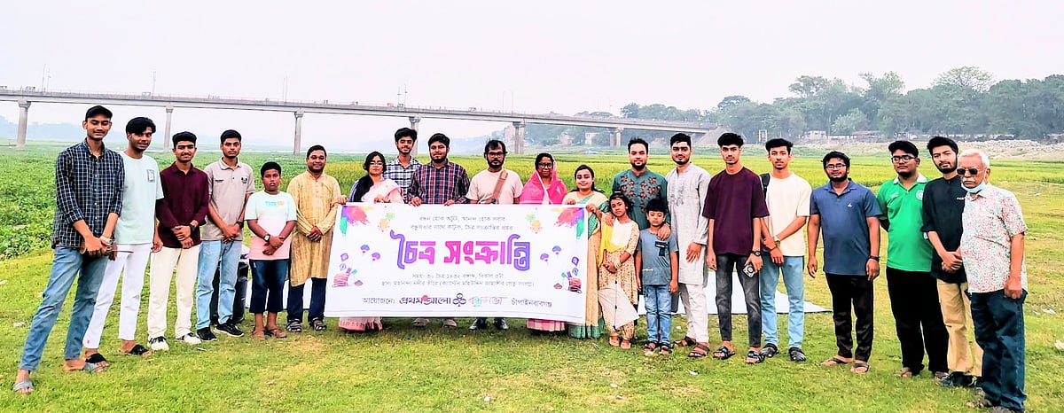 নদীতে পড়ন্ত বিকেলের ঢেউ আর তীরের হিমেল হাওয়া। এমন পরিবেশে ঘুড়ি ওড়ানো, নাচ, গান ও আবৃত্তির মধ্য দিয়ে চৈত্রসংক্রান্তি উপলক্ষে বঙ্গাব্দ ১৪৩২-কে বিদায় জানিয়েছে চাঁপাইনবাবগঞ্জ বন্ধুসভা। ১৩ এপ্রিল বিকেলে মহানন্দা নদীর পারে বীরশ্রেষ্ঠ ক্যাপ্টেন মহিউদ্দীন জাহাঙ্গীর সেতুর পাশে উৎসবমুখর এই অনুষ্ঠানের আয়োজন করা হয়।