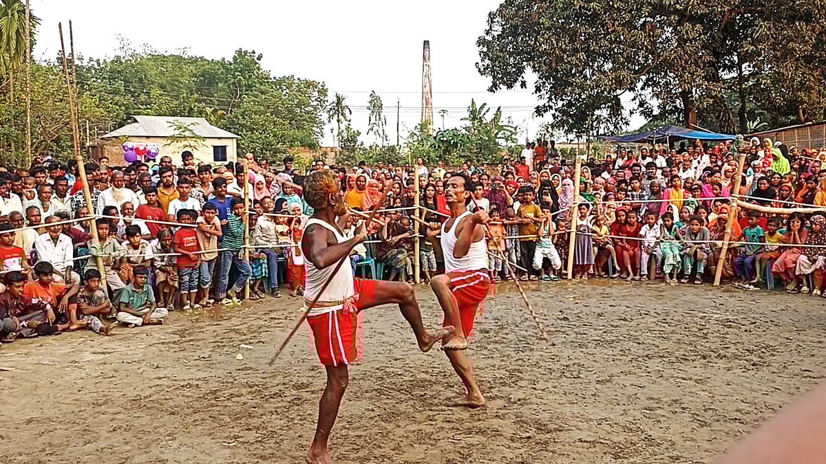 গতকাল শনিবার বিকালে নাছিরপুর এলাকার একটি মাঠে লাঠিখেলার আয়োজন করা হয়। বাংলা নববর্ষ উপলক্ষে এই আয়োজন করে দুর্বার সংঘ। বিকেল চারটায় লাঠিখেলা শুরু হওয়ার কথা ছিল। তবে বৃষ্টির কারণে কিছুটা দেরি হয়; খেলা শুরু হয় পাঁচটার দিকে। এর আগেই বাদ্যযন্ত্র বাজাতে থাকে লাঠিয়াল দলের বাদক দল। গ্রামের নবীন-প্রবীণসহ সব বয়সের মানুষ জড়ো হন। লাঠিখেলা দেখতে নাছিরপুর ছাড়াও পাশের লাঙ্গলজোড়া, মাছিমপুর, শরিফপুরসহ বিভিন্ন এলাকার নানা বয়সী মানুষ ভিড় করেন।