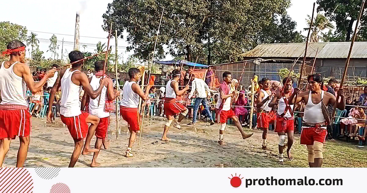 লাঠির ঘূর্ণি, ঢোলের তালে তালে ছন্দময় কসরত—মুহূর্তেই যেন ফিরে এল গ্রামবাংলার হারানো এক ঐতিহ্য। একসময় যে লাঠিখেলা ছিল জনপদের বিনোদনের প্রাণ, আধুনিকতার ভিড়ে তা প্রায় বিলুপ্তির পথে। তবে জামালপুর শহরের নাছিরপুরে ‘দুর্বার সংঘ’-এর উদ্যোগে সেই হারানো ঐতিহ্যই যেন নতুন করে প্রাণ ফিরে পেল।
