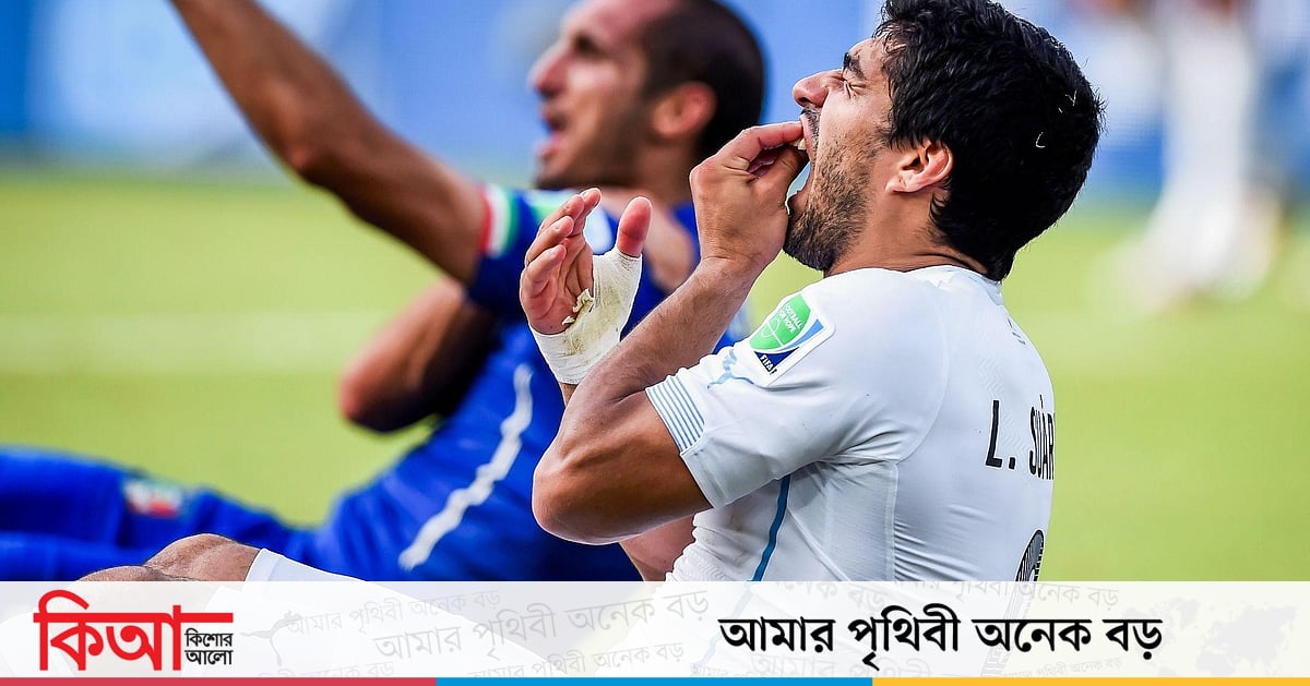 ম্যাচের বাকি আর মাত্র ১১ মিনিট। ইতালি–উরুগুয়ের জীবন-মরণ লড়াই। যে জিতবে, সে-ই জায়গা করে নেবে বিশ্বকাপের শেষ ষোলোতে। এমন সময় ফুটবল বিশ্ব থমকে গেল এক মুহূর্তের জন্য। ইতালিয়ান ডিফেন্ডার জর্জিও কিয়েলিনি গিয়ে রেফারির কাছে অভিযোগ করলেন, লুইস সুয়ারেজ তাঁকে কামড় দিয়েছেন। ধাক্কা নয়, ঘুসি নয়, দাঁত বের করে আক্ষরিক অর্থেই কামড় বসিয়ে দিয়েছেন কাঁধে। পায়ের জাদুতে মুগ্ধ করা সুয়ারেজের ‘মরণকামড়’ দেখেছিল সেদিন বিশ্ব।