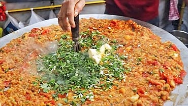 আড়াই থেকে তিন ফুট ব্যাসের গোল তাওয়ার ওপরে প্রথমে ঢেলে দেওয়া হয় আমুল ব্র্যান্ডের এক চামচ মাখন। তারপরে কুচি করা পেঁয়াজ, রসুন, আদা আর প্রচুর টমেটো একসঙ্গে ভাজা হয়, যতক্ষণ না ঘ্রাণে চারপাশ ভরে ওঠে। তারপর যোগ করা হয় সেদ্ধ আলু, ফুলকপি, মটরশুঁটি, সামান্য কিছু ক্যাপসিকাম আর অল্প গাজর। সব একসঙ্গে ওই বিশাল পুরু লোহার তাওয়ায় মিশিয়ে বড় আকারের একটা খুন্তি দিয়ে জোরে জোরে কেটে কেটে বাড়ি দেওয়া হয়। পাওভাজিওয়ালার হাতের তালু ও তাওয়ার আওয়াজে তৈরি হয় এক বিশেষ ছন্দ। খোলা মাঠে অনেক দূর থেকে শুনলেও বোঝা যায় পাওভাজি তৈরি হচ্ছে।