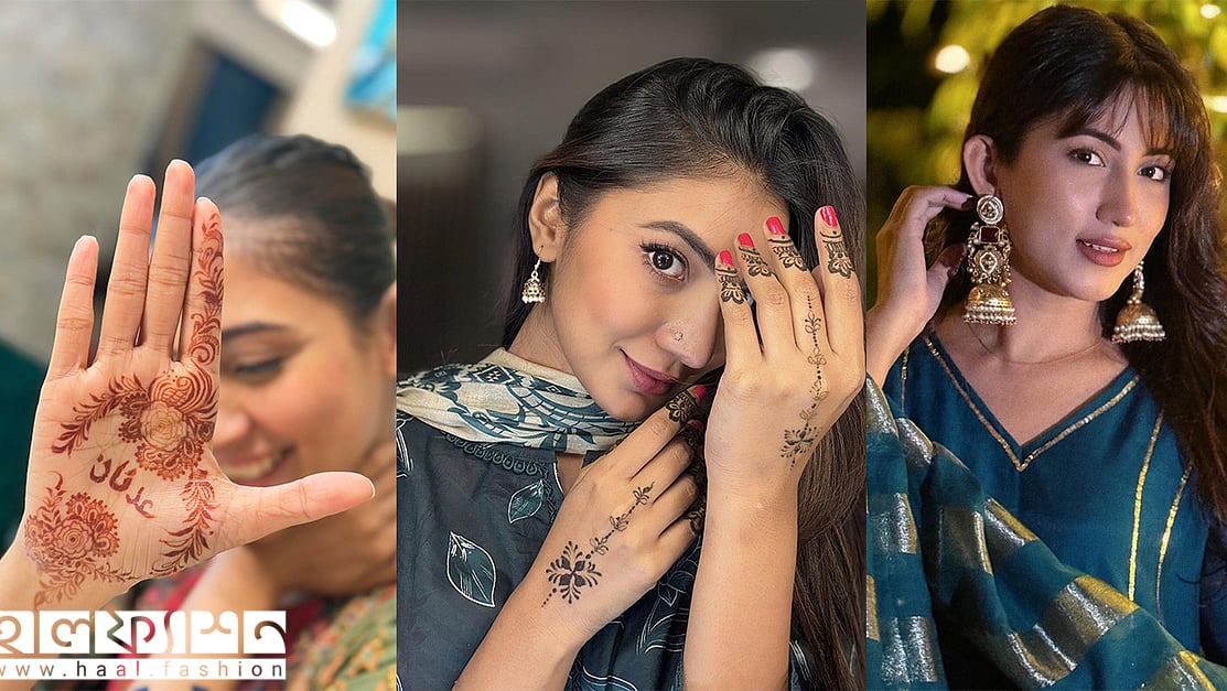 সুনেরাহ বিনতে কামালের হাতে মেহেদীর সাজ। সঙ্গে আছে নাকফুল আর ঝুমকাচুলের ব্যাংস, বড় রূপালি ঝুমকায় সাফা কবিরঈদের থিমেই হালকা নকশার মেহেদী দিয়েছেন পরীমনিসামিরা খান মাহীও হাতে মেহেদী দিয়েছেন নজরকারা নকশায় চলচ্চিত্র নির্মাতা আদনান আল রাজীবের নাম হাতের মেহেদীতে লিখে সাড়া জাগিইয়েছেন মেহজাবীন চৌধুরী