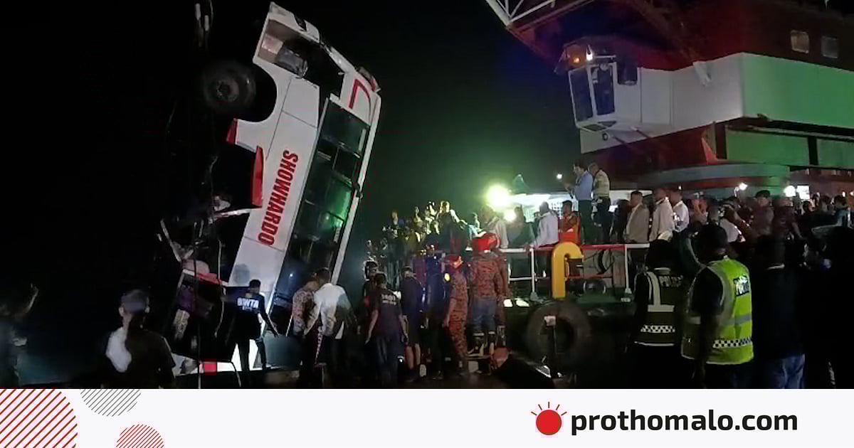 রাজবাড়ীর গোয়ালন্দ উপজেলার দৌলতদিয়া ৩ নম্বর ঘাটে ঢাকাগামী একটি যাত্রীবাহী বাস নিয়ন্ত্রণ হারিয়ে পন্টুন থেকে পদ্মা নদীতে পড়ে যায়। ২৫ মার্চ বিকেলে ঘটে যাওয়া এ দুর্ঘটনায় বৃহস্পতিবার সকাল ১০টা পর্যন্ত ২৪ জনের মরদেহ উদ্ধার করা হয়েছে। বিস্তারিত ভিডিও প্রতিবেদনে—